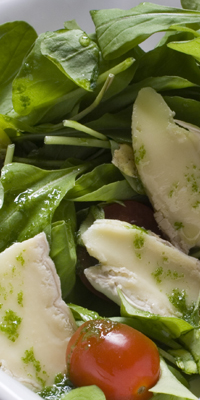 Ingredientes: 400 grs. netos de lechuga, 200 grs. netos de pepino, 85 grs. netos de lomo embuchado magro, 80 grs. de queso fresco light, 2 cucharadas de menta, 2 cucharadas medianas de aceite de oliva, 40 cl. de zumo de limón y sal.