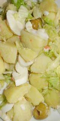 Preparación: Lavar y cocer las patatas enteras y el huevo. Dejar enfriar. Pelar las patatas y cortarlas en dados. Freir la sepia y trocearla. En un bol hacer una salsa con el aceite, vinagre, pimienta, sal y el huevo. Lavar y picar el perejil y añadir a la ensalada. Verter la salsa por encima y servir.