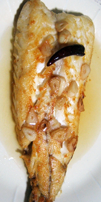 Preparación: Limpiar y cortar la merluza en rodajas, sazonar y rebozar en harina, picar el ajo y el perejil muy finos, poner en una cazuela el aceite el ajo, perejil y las ruedas de merluza. Sobre ello poner los guisantes y los espárragos, añadiendo el agua necesaria para que no se seque. Cocer durante 10 minutos. Servir caliente. Acompañar este plato con el pan correspondiente a cada ración.