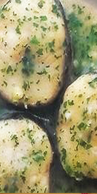 Preparación: Pasar las rodajas de merluza por harina y freirla en el aceite a fuego lento. Una vez dorada ponerla en una cazuela y reservar. Rehogar la cebolla picadita en el mismo aceite y añadir la harina Hacer una pasta en el mortero con el ajo, el perejil, sal y un poco de agua y añadirla al refrito de la cebolla. Verter todo sobre la merluza y dejar cocer durante 10 minutos. Servir acompañado con el pan correspondiente a cada ración.