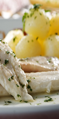 Preparación: Untar una fuente de horno con aceite; colocar encima los filetes, sazonar, verter el vino, espolvorear con perejil picado y cubrir con papel de aluminio. Meter a horno medio, hasta que el pescado esté en su punto (8 minutos). Servir acompañado con el pan correspondiente a cada ración.