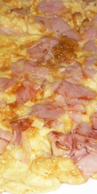 Ingredientes: 4 huevos, 230 grs. netos de jamón cocido natural, 9 grs. de aceite.