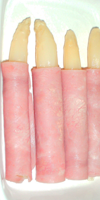 Ingredientes: 180 grs. netos de jamón cocido natural, 100 grs. netos de fiambre de pavo, 400 grs. netos de espárragos trigueros, 22 grs. netos de queso parmesano rallado, 1 cucharada mediana de aceite de oliva, sal y especias al gusto.