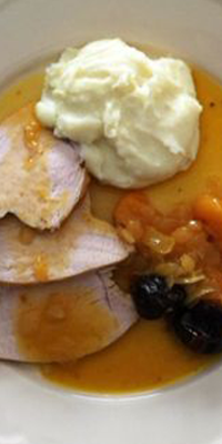 Ingredientes: 400 grs. netos de fiambre de pavo en lonchas, 1 copa de jerez seco, 260 grs. netos de cebolla, 200 grs. netos de zanahoria, 2 cucharadas de aceite y sal.