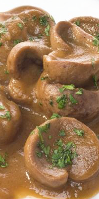 Ingredientes: 350 grs. netos de riñones, 460 grs. netos de patatas, 1 copa de jerez seco, 1 cucharada de harina, 150 grs. netos de cebolla, 1 cucharada de aceite de oliva, 1/2 cucharada de pimentón y sal.