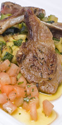Preparación: Freir la cebolla cortada en la olla a presión. Cuando comience a dorarse echar el pimiento y el calabacín troceados y por último la salsa de tomate y la sal. Hervir 10 minutos en olla tapada. Destapar y poner a fuego vivo hasta que se consuma el exceso de caldo. Hacer las chuletas a la plancha, añadirlas al pisto y dejar que de un par de hervores todo junto. Acompañar este plato con el pan correspondiente a cada ración.
