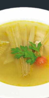Preparación: Poner a cocer los tallos del apio (separar y reservar las hojas) en 1 litro de agua, durante 15 minutos. Después triturarlos y poner esta crema al fuego añadiendo las hojitas picadas y el cubito. añadir la sémola, triturar las almendras y agregarlas. Dejar hervir 10 minutos, añadir el fiambre picadito y la leche y servir.