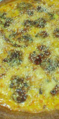 Preparación: se trocea la calabaza y se pone a asar en el microondas durante 8 minutos. Se aplana la masa de pizza y se coloca sobre una fuente plana con los bordes levantados. Se pone unos 10 minutos al grill. Se mezcla la calabaza con el queso fresco y se aplasta con un tenedor. Se agregan los huevos batidos y las claras y se sala a gusto, añadiendo también un toque de canela. Se extiende la mezcla sobre la masa de pizza y se salpica con trozos de queso Gorgonzola, Roquefort o Azul. Se mete al horno unos 20 minutos, o hasta que el huevo cuaje.