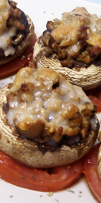 Preparación: Lavar bien los chapiñones y quitarles los rabos reservándolos aparte, lavados y bien picaditos. Colocar los champiñones boca arriba en una fuente refractaria, sobre la taza de caldo que no debe cubrirlos. Rallar la cebolla y mezclarla con los ajos picaditos, el perejil, los rabos, el jamón, todo muy picado y un poco de sal. Revolver bien hasta hacer una pasta y poner una cucharada de ella sobre cada champiñón. Rociar con zumo de limón, unas gotas de aceite y meter al horno 1/2 hora, hasta que esten hechos y el relleno doradito. Servir calientes.