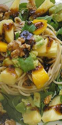 Ingredientes: 400 grs. netos de endibias, 150 grs. netos de queso fresco light, 150 grs. netos de tomate, 250 grs. netos de kiwis, 100 grs. netos de cebolla fresca, 160 grs. netos de guisantes cocidos, 850 grs. netos de bacalao desalado, 150 grs. netos de maiz cocido, 6 grs. netos de azucar, 18 cc. de aceite de oliva, vinagre, sal y pimienta.