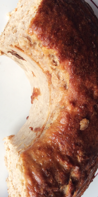 Ingredientes: 170 grs. de harina de trigo integral, 3 huevos, un sobre (15 grs. ) de levadura, 60 grs. de proteína de soja al 90%, 60 grs. de queso parmesano rallado, 450 grs. de manzanas peladas, 40 grs. de nueces, 30 grs. de pasas de corinto, 30 grs. de aceite de oliva y edulcorante al gusto.