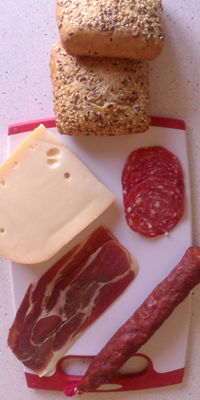 Ingredientes: 100 grs. de pan, 140 grs. de atún natural en conserva, 40 grs. de tomate.