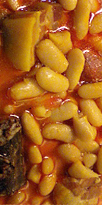 Preparacion: En un recipiente poner a calentar el aceite, freir en él la cebolla y el pimiento. Cuando esten bien pochados añadir el chorizo cortado a taquitos pequeños y freir todo durante 2 minutos. Añadir el contenido del bote de alubias y dejar hervir 5 minutos más y servir.