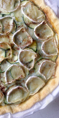 Preparación: se extiende la masa base en una fuente, se espolvorea sobre ella sal, nuez moscada y canela, se pincha con un tenedor y se pone al grill del microondas durante 10 minutos. Mientras tanto se lava el calabacín, y con piel y todo, se corta en rodajas finas. Cuando se ha cocido la masa, se distribuyen las rodajas de calabacín en capas, añadiendo sal en cada capa. Se baten el huevo y las claras y se vierten sobre las capas de calabacín, cuidando no rebasar los bordes de la masa. Se corta en rodajas el queso y se decora con nuez moscada y canela en polvo. Se mete al grill del microondas, junto con la potencia más sueve del mismo, durante 16 minutos, o hasta que el huevo haya cuajado.