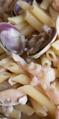 Ingredientes: 370 grs. netos de merluza, 135 grs. netos de macarrones, 200 grs. de leche desnatada, 25 grs. netos de harina, 25 grs. netos de queso parmesano rallado, 2 cucharadas de aceite de oliva y sal.
