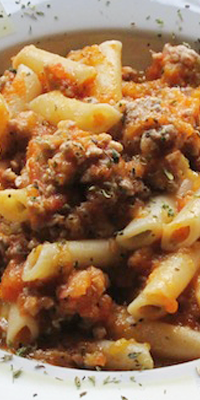 Ingredientes: 160 grs. de macarrones, 520 grs. netos de riñones de cordero, 25 grs. netos de harina, 2 cucharadas medianas de aceite de oliva, 1 vaso de vino blanco, un cubito de caldo de carne y sal.