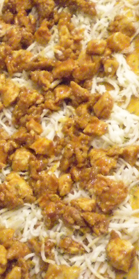Ingredientes: 240 grs. de Pizza Barbacoa, marca Hacendado, 120 grs. de jamon serrano magro.
