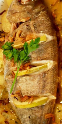 Ingredientes: 320 grs. netos de besugo, 140 grs. netos de cebolla, 2 cucharadas medianas de aceite de oliva, 5 cucharadas de vinagre, perejil y sal.