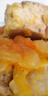 Ingredientes: 340 grs. netos de bonito, 140 grs. netos de cebolla, 12 grs. de harina, 1 cucharilla de pimienta negra en grano, 1 hoja de laurel, 1/2 litro de vino blanco seco, 2 cucharadas medianas de aceite y sal.