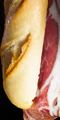Preparación: Restregar el tomate natural en el pan, distribuir el jamon semigraso en finas lonchas por el bocadillo, masticar despacio saboreándolo.