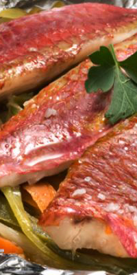 Ingredientes: 440 grs. netos de salmonetes, 3 dientes de ajo, 2 cucharadas medianas de aceite, 1 cucharadita de pimentón, sal, tomillo y orégano .