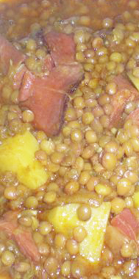 Ingredientes: 180 grs. de lentejas, 50 grs. de cebolla, 50 grs. de zanahoria, 125 grs. de chorizo magro, 2 dientes de ajo, 1 cucharada mediana de aceite, pimentón y sal.