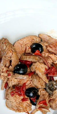Ingredientes: 400 grs. netos de pierna de cordero, una cucharilla de aceite, 200 grs. netos de pimientos rojos asados, 250 grs. de pan integral, 5 dientes de ajo y sal.