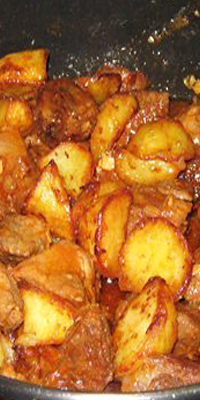 Preparación: Partir la carne en trozos regulares. Poner en la olla todos los ingredientes juntos y agregar 1/2 litro de agua. Tapar y dejar cocer, lentamente, unos 40-45 minutos. Pasar la salsa por el chino; verterla por encima de la carne y servir. Acompañar este plato con el pan correspondiente a cada ración.