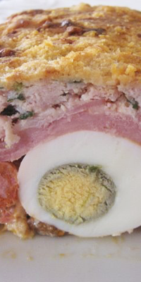 Preparación: Mezclar la carne con el jamón picado, añadir la leche, el ajo, el perejil y la sal, todo ello muy machacado. Batir el huevo y añadirlo amasando todo bién. Colocar en un molde, meter al horno 1 hora, o 25 minutos en olla a presión. Hacer una salsa con la cebolla rehogada, la harina, el jerez, la pimienta y un poco de agua. Dejar hervir unos minutos, sacar la carne del molde, cortarla en rodajas y añadirle la salsa muy caliente. Acompañar este plato con el pan correspondiente a cada ración.