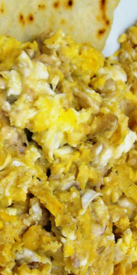 Ingredientes: 360 grs. netos de sesos, 30 grs. netos de cebolla, 1 rama de perejil, 1/2 hoja de laurel, 1 huevo, 4 claras de huevo, 1 cucharilla de aceite, 500 grs. netos de calabacin, 120 grs. de queso batido desnatado, pimienta y sal.