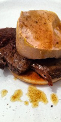 Ingredientes: 300 grs. de solomillo de ternera, 18 grs. de foie-gras, 300 grs. de escarola, 3 dientes de ajo, 2 cucharadas de aceite, 1 cucharada de mostaza, sal y pimienta.