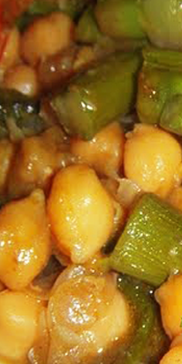 Ingredientes: 300 grs. netos de garbanzos, 100 grs. netos de guisantes (pueden ser frescos), 100 grs. netos de espárragos, 140 grs. netos de cebolla, 160 grs. netos de puerro, 140 grs. de tomate, 100 grs. de zanahoria, 300 grs. netos de manitas de cerdo, pimienta y sal.