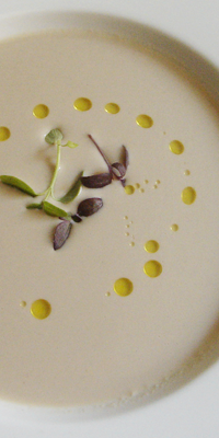 Preparación: Saltear las colas de gamba y reservar. Poner el pan en remojo un rato. Picar las almendras y los ajos, mezclar en un bol el picadillo, el pan, el aceite, vinagre y sal a voluntad, agregar 4 vasos de agua y triturar hasta que quede un pure fino. Añadir el pepino cortado en daditos y las gambas y servir frío.