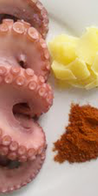 Elaboración: se pelan y trocean las patatas y se asan en el microondas. Se añade el pulpo cortado a rodajas. Se aliña con sal gorda, pimentón y aceite de oliva. Se calienta nuevamente y se sirve. Acompañar este plato con la cantidad de pan correspondiente a cada ración.