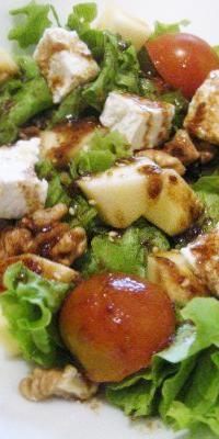 Ingredientes: 250 grs. de lechuga, 500 grs. netos de tomates, 120 grs. de atún natural de lata, 75 grs. netos de gambas, 80 grs. netos depalitos de mar, 30 grs. netos de alcaparras, 140 grs. de queso fresco light, 1 yogur desnatado, 60 grs. de mahonesa light, 20 grs netosde aceitunas verdes, sal y vinagre.