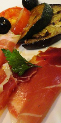 Ingredientes: 150 grs. netos de pollo sin grasa, 200 grs. netos de judias verdes, 50 gr. netos fiambre de pavo, 85 grs. netos de jamón serrano magro, 100 grs. netos de espárragos, 60 grs. netos de guisantes, 3 cucharadas de aceite, 200 grs. de pan integral, vinagre y sal.