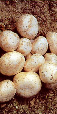 Preparación: Lavar bien los champiñones, secarlos con un paño, cortarles el extremo del rabo y picarlos en láminas. Poner una sartén grande al fuego con el aceite. Cuando este caliente, sofreir los ajos pelados y cortados en dos. Antes de que se doren añadir los champiñones. Darles varias vueltas y añadir la harina revolviendo un poco. A los 5 minutos verter el vino y la misma cantidad de agua. Dejar hervir 15 minutos con la sartén tapada y con cuidado de que no se peguen. Añadir sal, adornar con el jamón picadito y servir calientes.